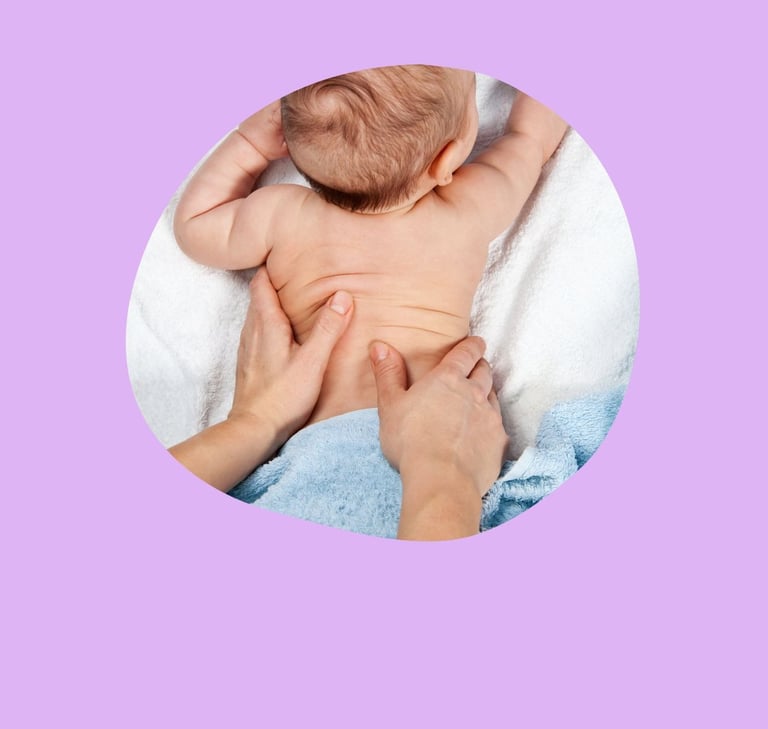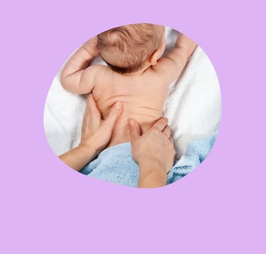 Massage qui soulage les inconforts les plus courants de bébés par le glissé sur les bras, les mains, le torse, le dos, les jambes, les pieds, le visage et le crâne.
